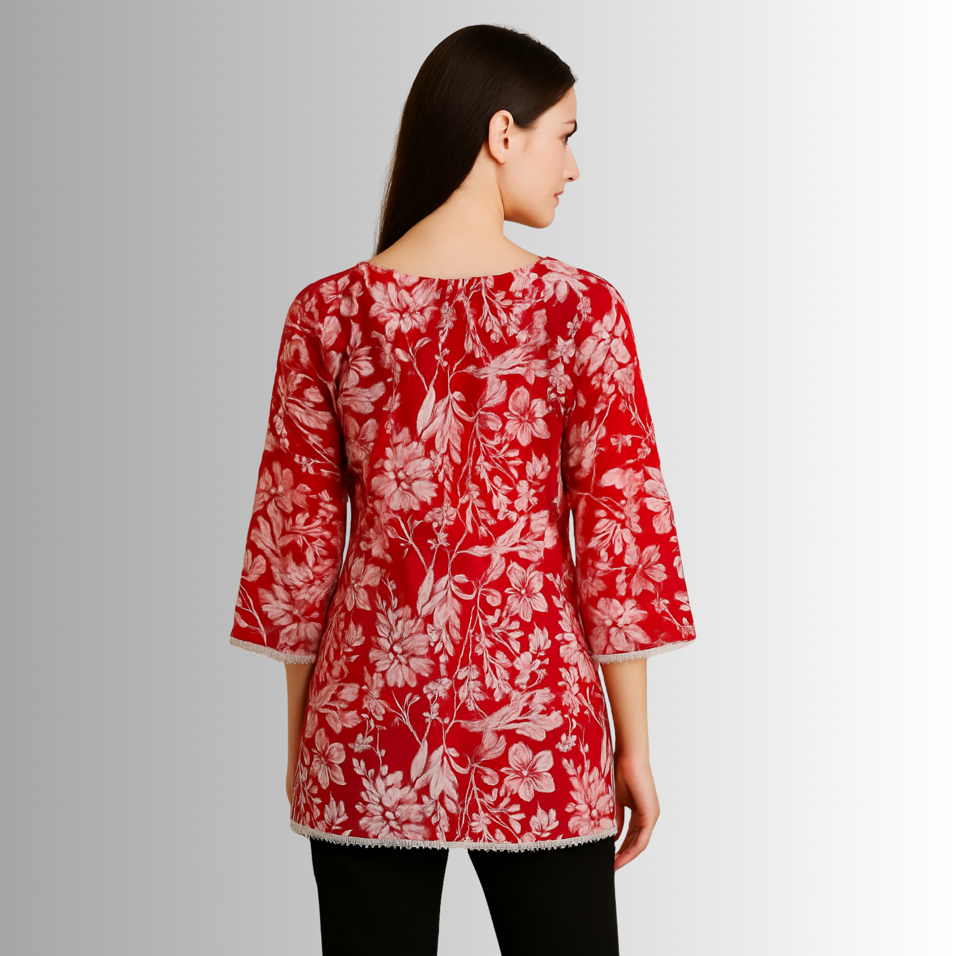 Step into timeless elegance with our Red Floral Hand-Printed Cotton Kurti πΈ, inspired by the rich heritage of Jaipur. Featuring delicate white floral motifs, a graceful V-neckline with lace detail, and a relaxed silhouette that falls just below the hips, this kurti is perfect for summer outings, casual gatherings, or festive moments. Crafted from breathable cotton βοΈ, it ensures all-day comfort and style.