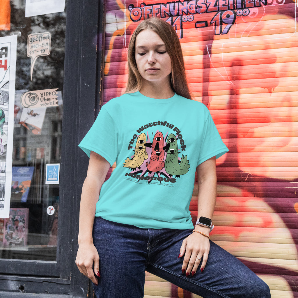 - 🎨 Front Print: The Watchful Flock Cartoon Art